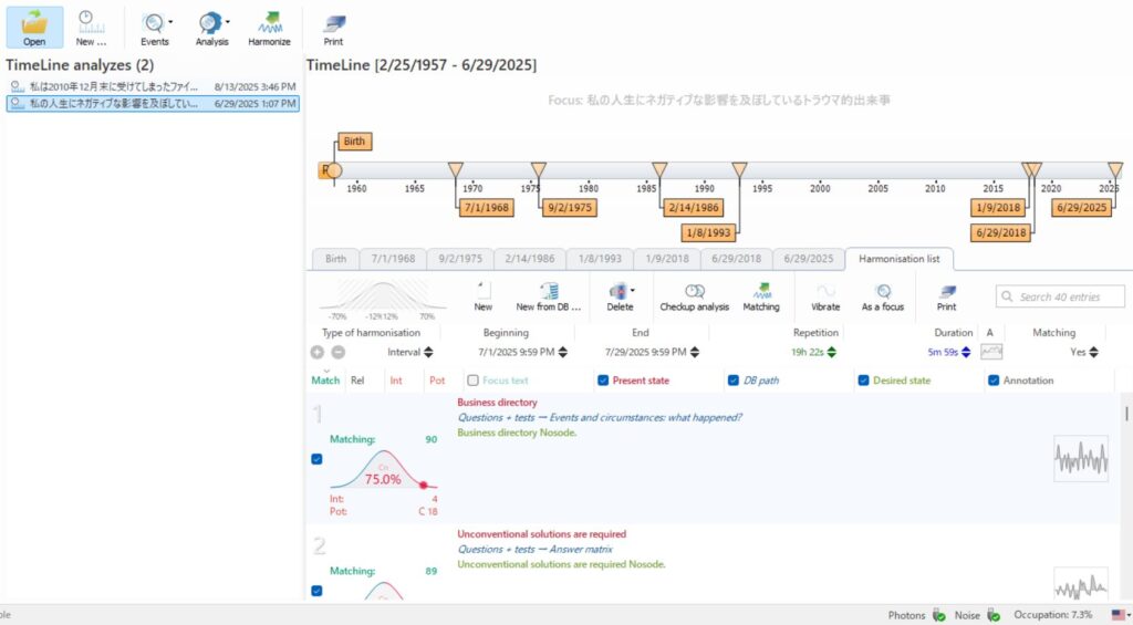 TimeWaverは、こうした目に見えない「波動のクセ」や潜在意識にあるブロックを数値化して特定します。