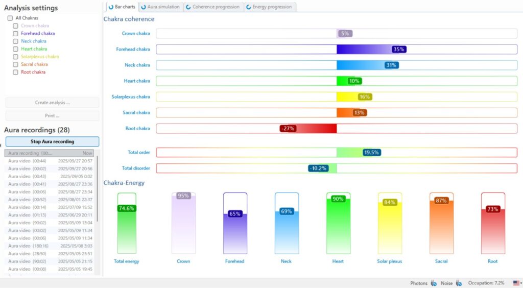 縦の棒グラフで各チャクラのエネルギー量を表示します。