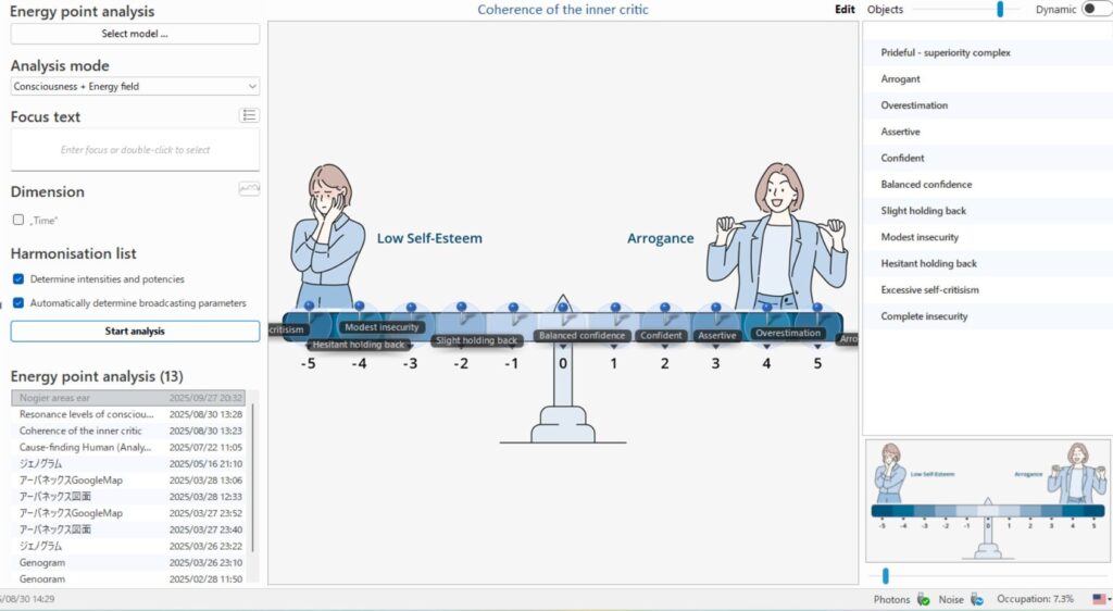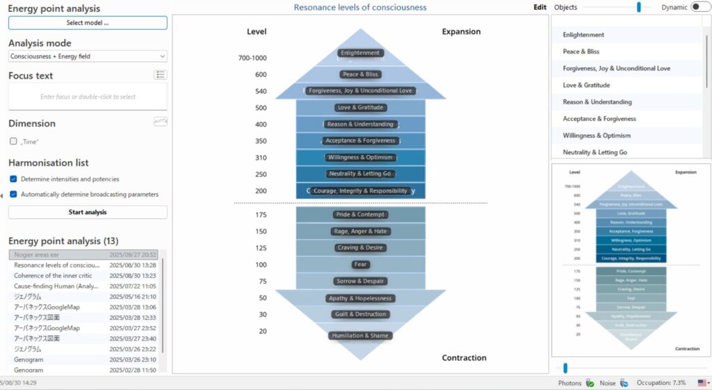 この分析では、今の自分がどの意識レベルに共鳴しているのかを可視化し、フォース的な滞りを減らすことで、本来の力=パワーを引き出すサポートを行います。